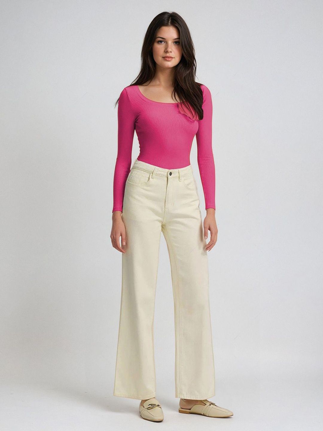 Kotty Women Solid Scoop Neck Long Sleeves Top
