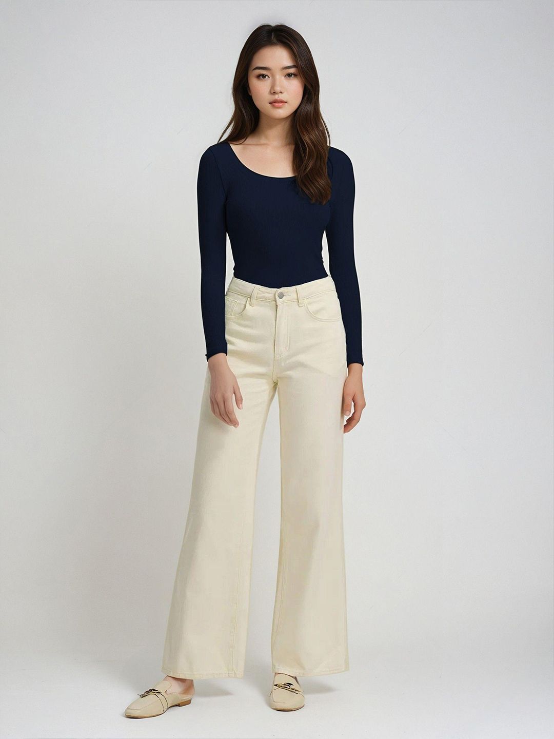 Product Details: Blue Top for womenSolidRegular lengthScoop neckLong sleevesKnitted || MATERIAL & CARE: Cotton BlendMachine Wash || SIZE & FIT: FittedThe model (height 5.8') is wearing a size S