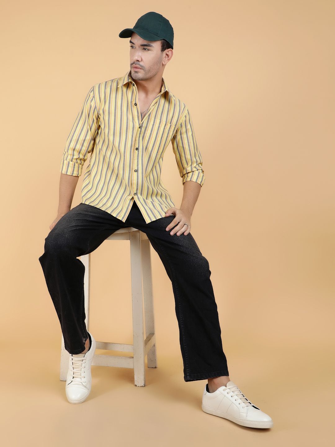 Product Details: Yellow & grey opaque casual shirtSpread collarButton placketPatch pocketLong sleevesCurved hemline || SIZE & FIT: Regular FitThe model (height 6') is wearing a size 40 || MATERIAL & CARE: PolyesterMachine Wash