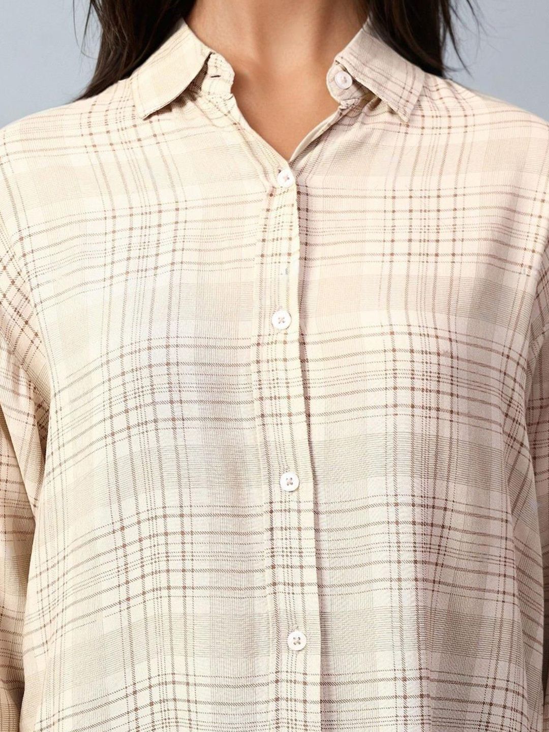 Kotty Women Spread Collar Tartan Checked Cotton Casual Shirt