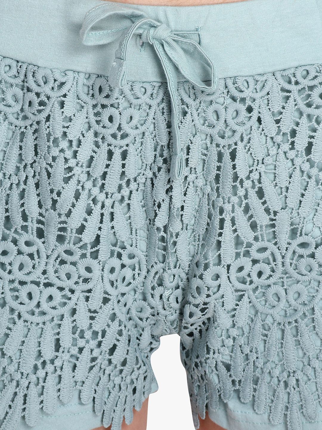 Product Details: Blue self-design casual mid-rise hot pants, has a drawstring closure || MATERIAL & CARE: CottonMachine-wash || SIZE & FIT: Regular Fit The model (height 5'8") is wearing a size 28