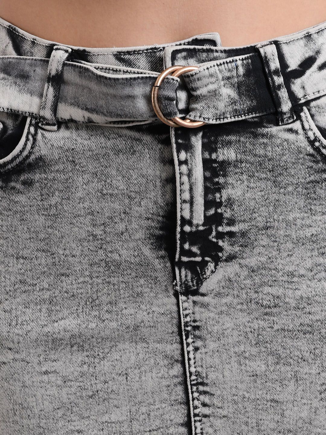 Kotty Women Grey Solid Denim Straight Mini Skirt
