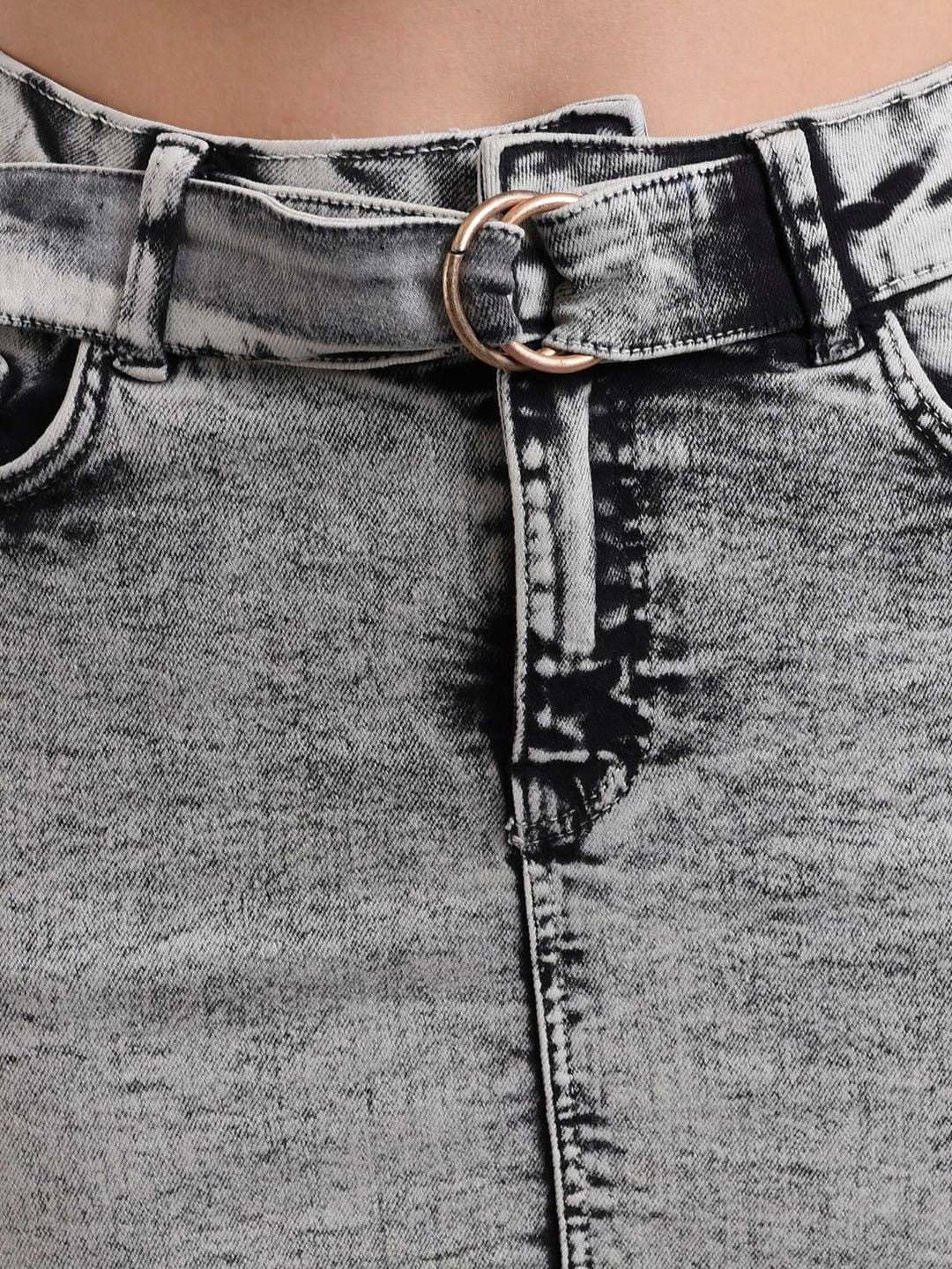 Kotty Women Grey Washed Denim Mini Straight Skirt