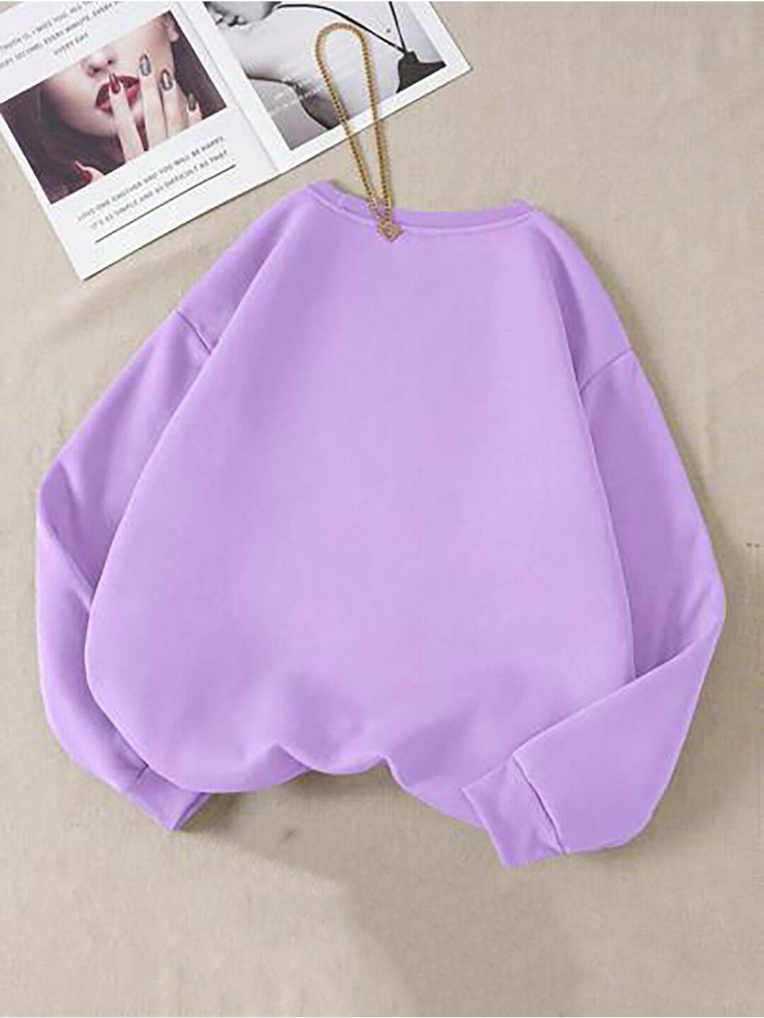Kotty Purple Typography Printed Fleece Pullover Sweatshirt