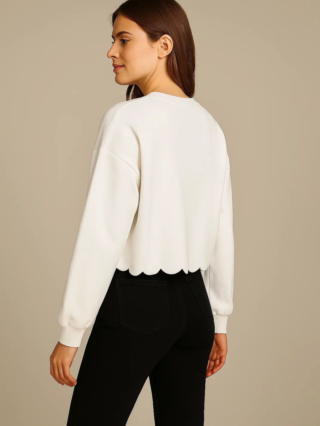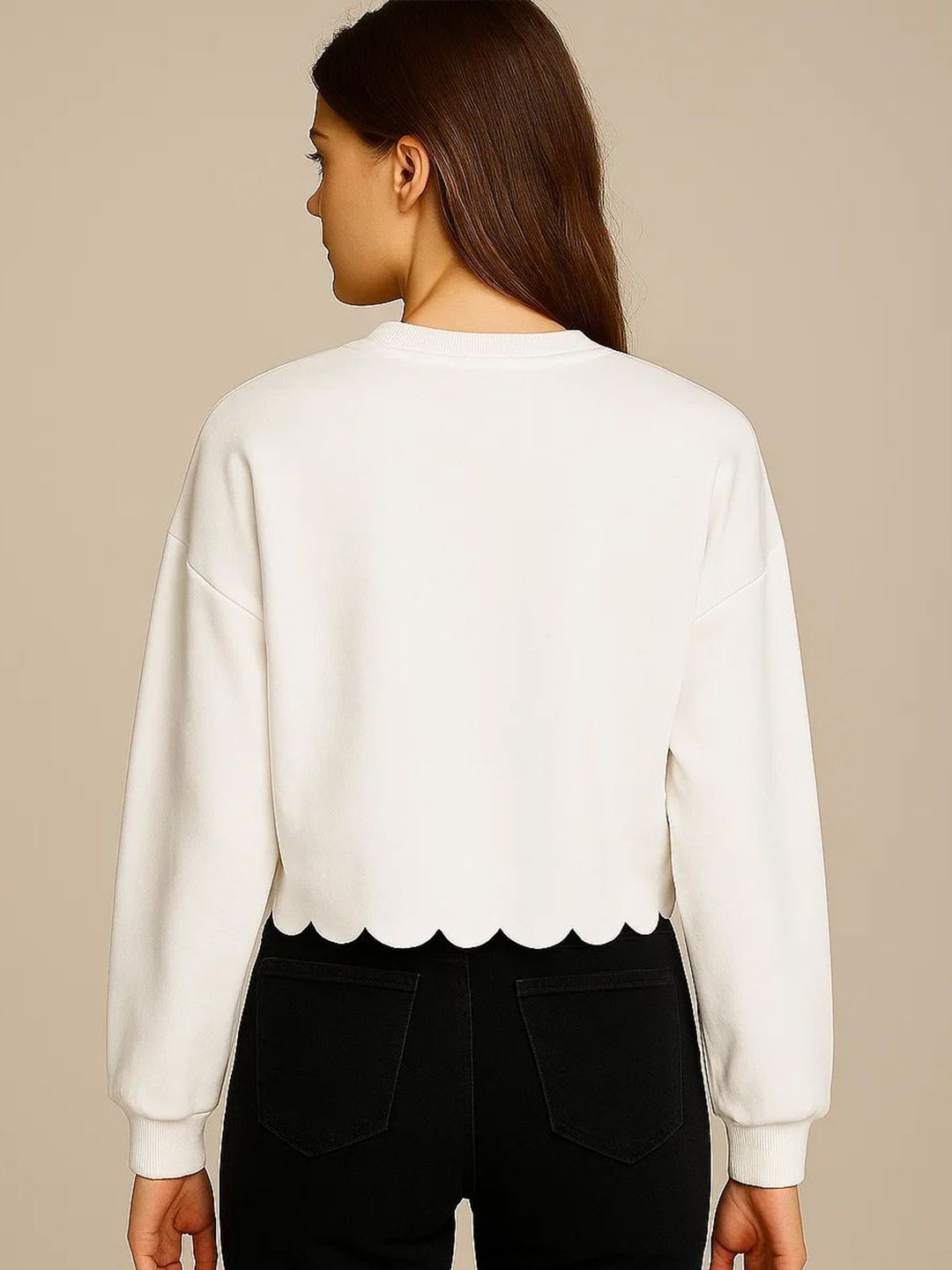 Product Details: White animal printed pullover sweatshirt has a mock neck, long sleeves, ribbed hem || SIZE & FIT: The model (height 5'8) is wearing a size S || MATERIAL & CARE: Machine Wash