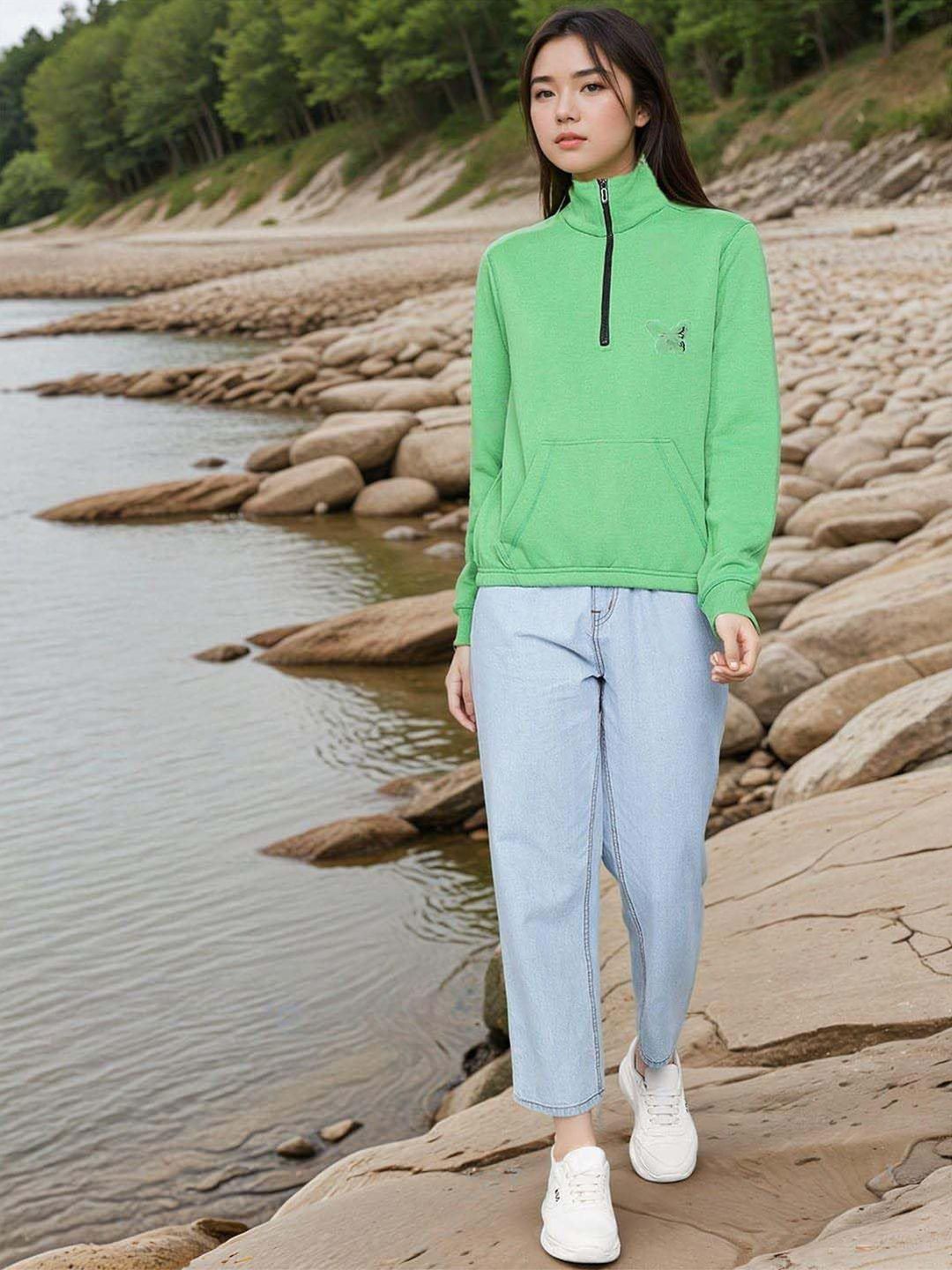 Kotty Women Graphic Printed High Neck Half Zipper Sweatshirt