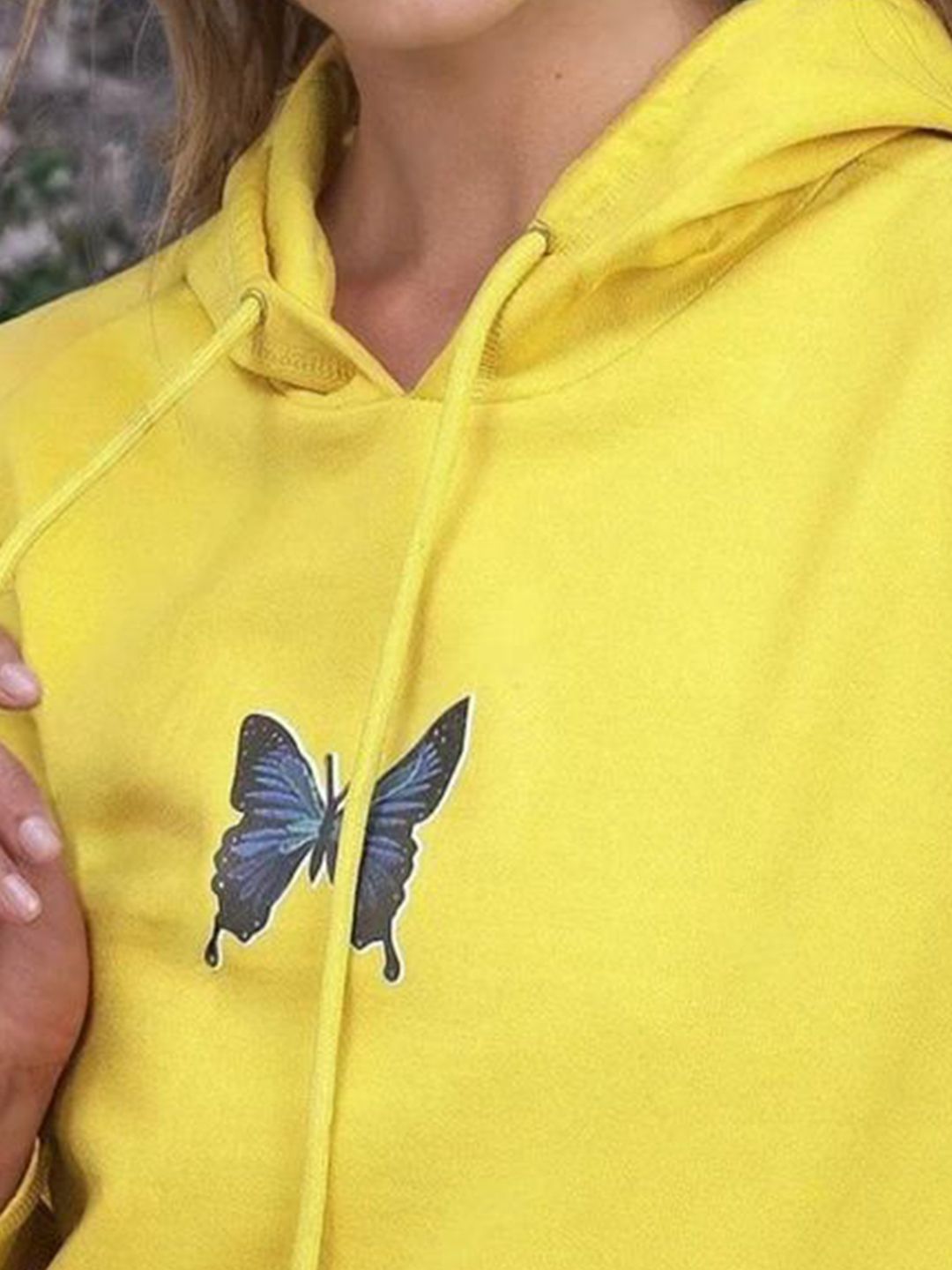 Product Details: Yellow graphic printed pullover sweatshirt has a hooded neck, 1 kangaroo pocket, long sleeves, ribbed hem || SIZE & FIT: The model (height 5'8) is wearing a size S || MATERIAL & CARE: FleeceMachine Wash