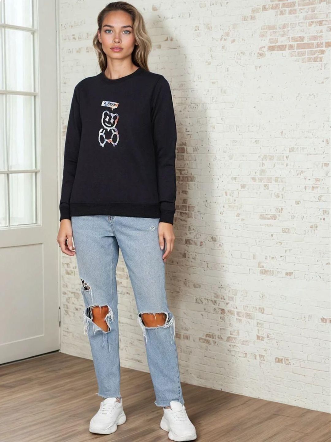 Kotty Women Graphic Printed Round Neck Full Sleeve Pullover Sweatshirt
