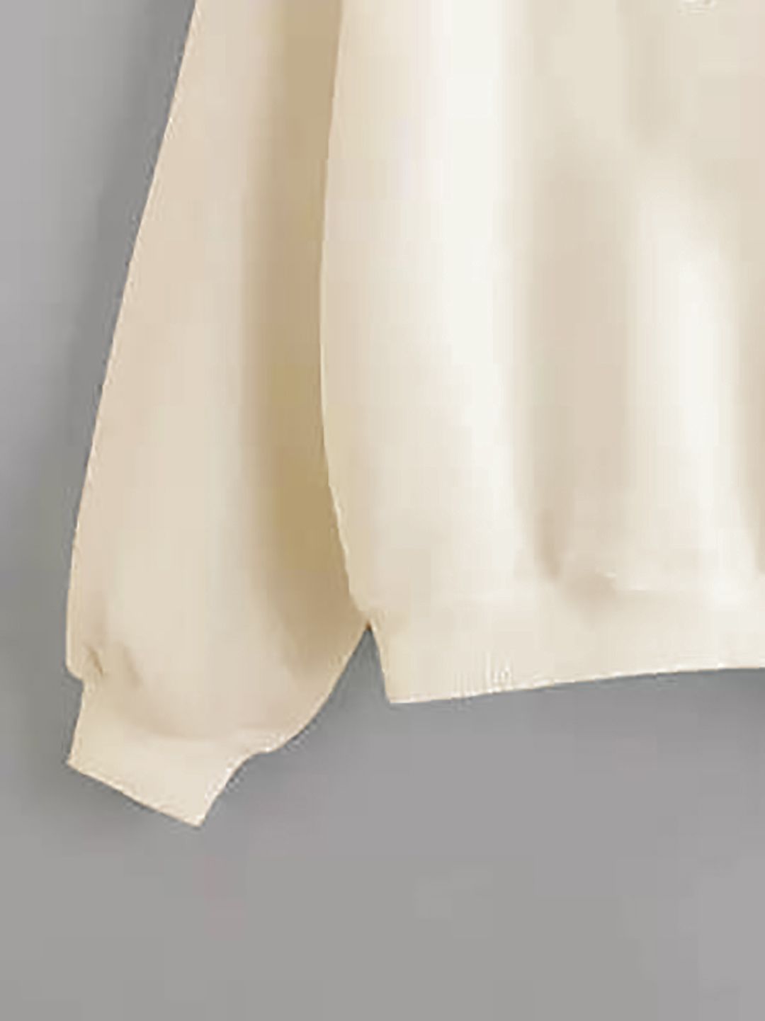 Product Details: Cream-coloured printed sweatshirt has a round neck, na pockets, long sleeves, closure, straight hem || MATERIAL & CARE: Fleece, Machine wash || SIZE & FIT: The model (height 5'8) is wearing a size S