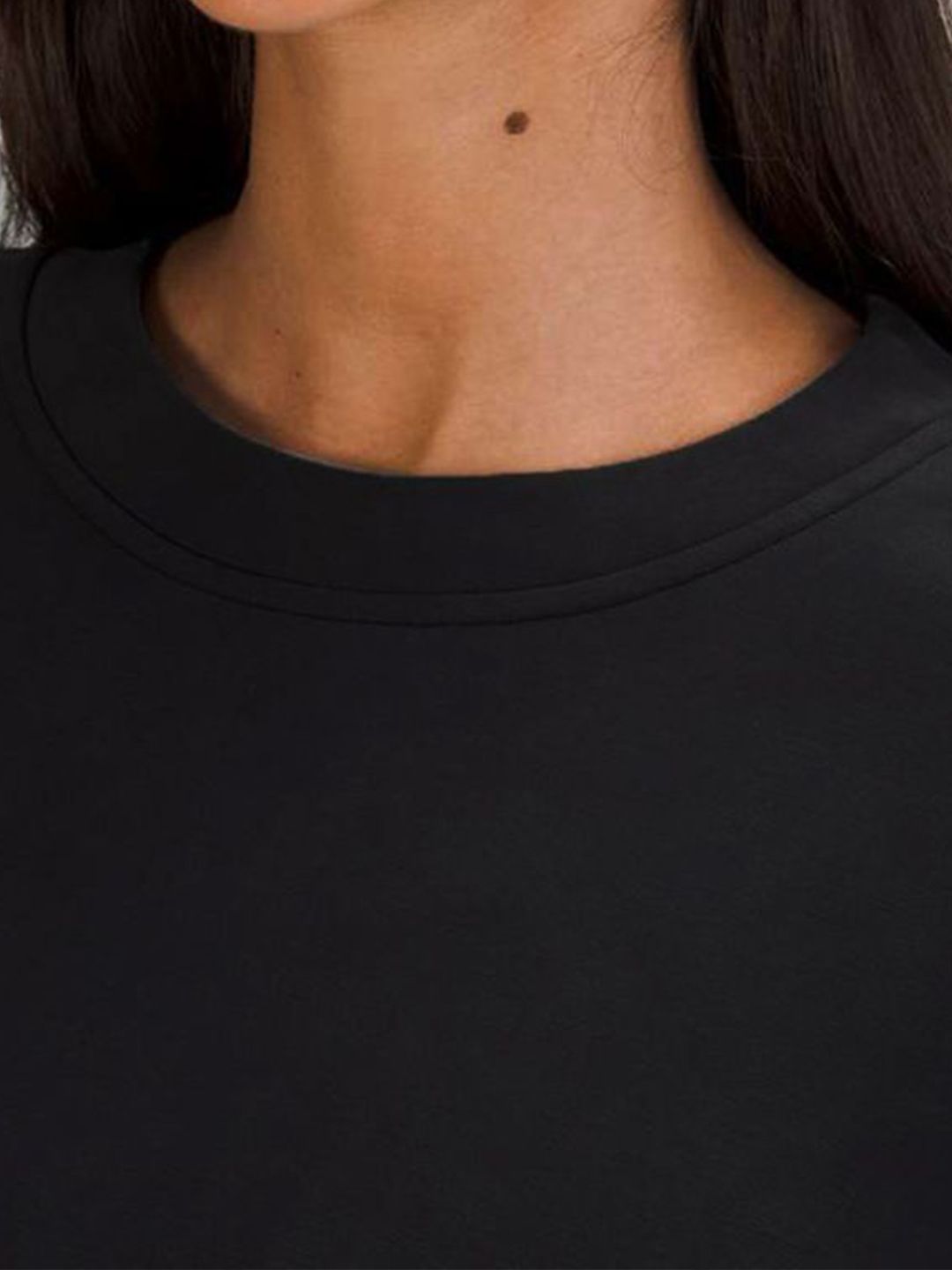 Product Details: Black printed sweatshirt has a round neck, long sleeves, ribbed hem || MATERIAL & CARE: FleeceMachine Wash || SIZE & FIT: The model (height 5'8) is wearing a size S