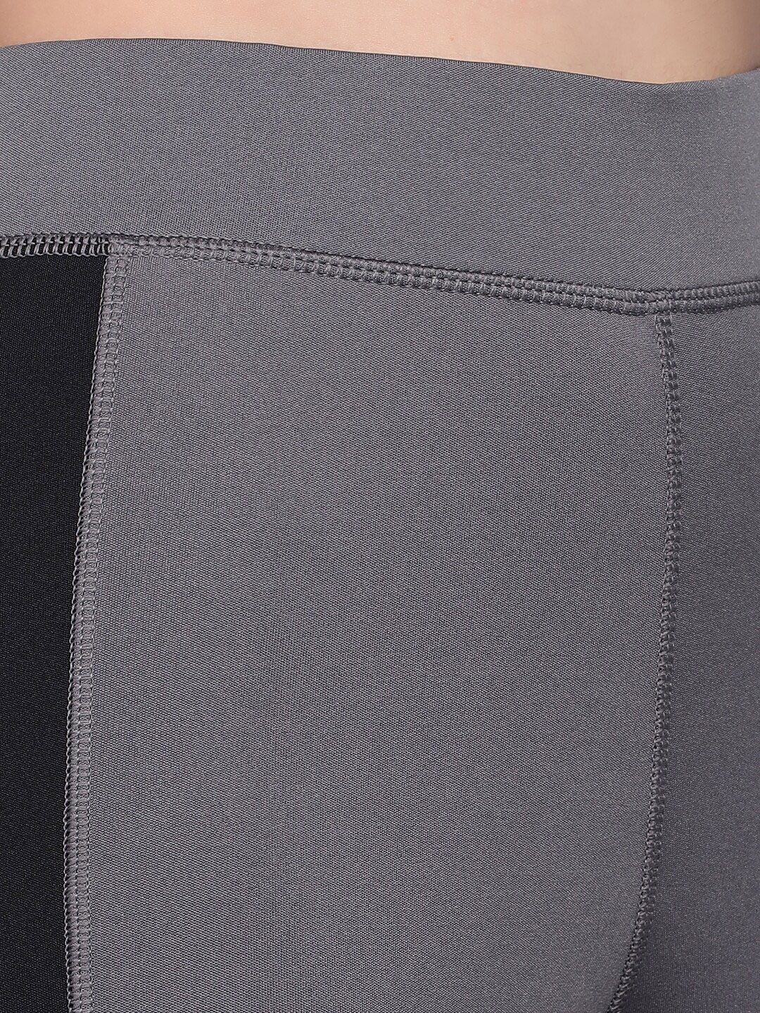 Product Details: Grey & black solid mid rise ankle-length high-rise training tights has an elasticated waistband with slip-on closure || SIZE & FIT: The model (height 5'8") is wearing a size S || MATERIAL & CARE: PolyesterHand Wash
