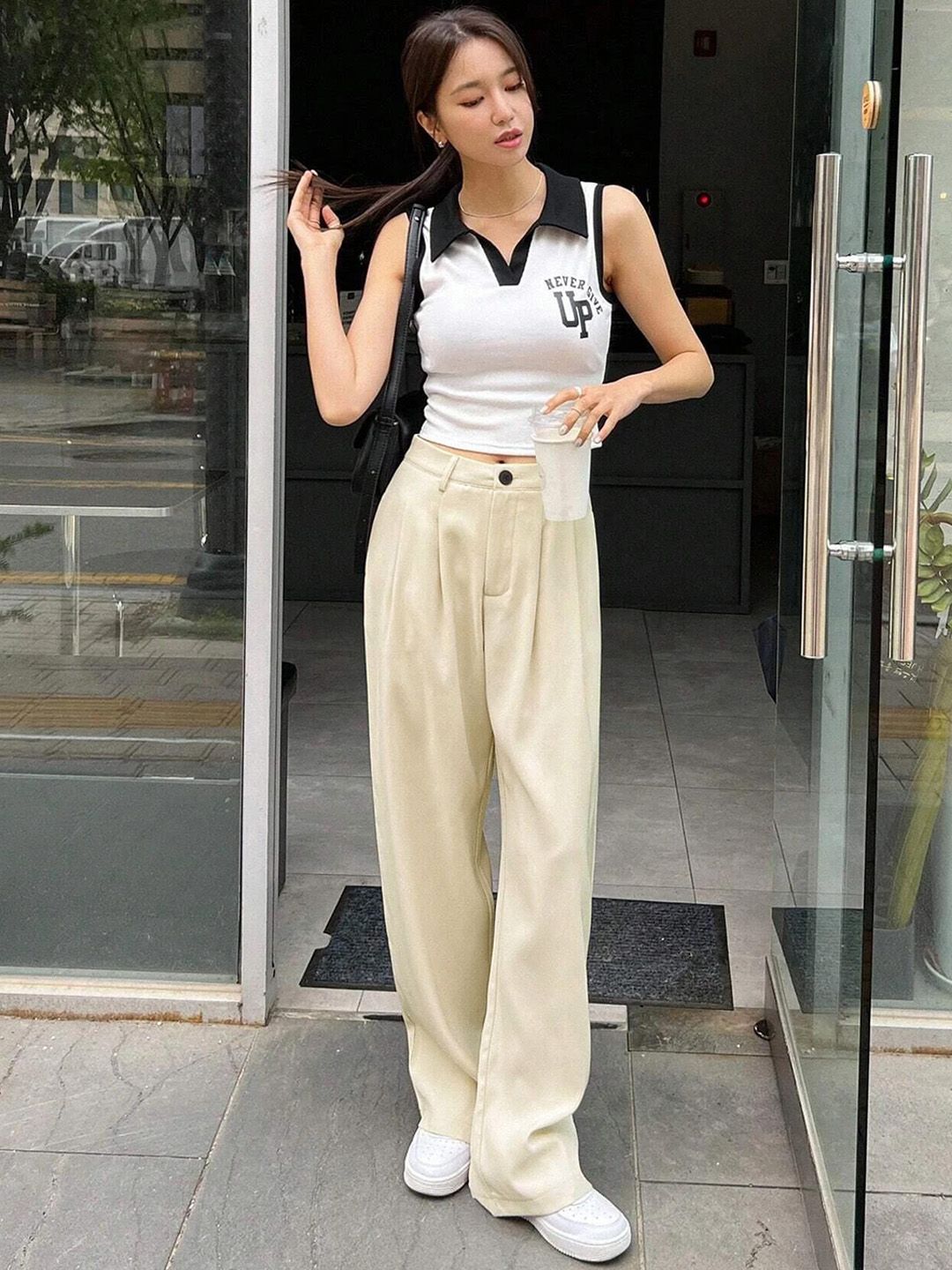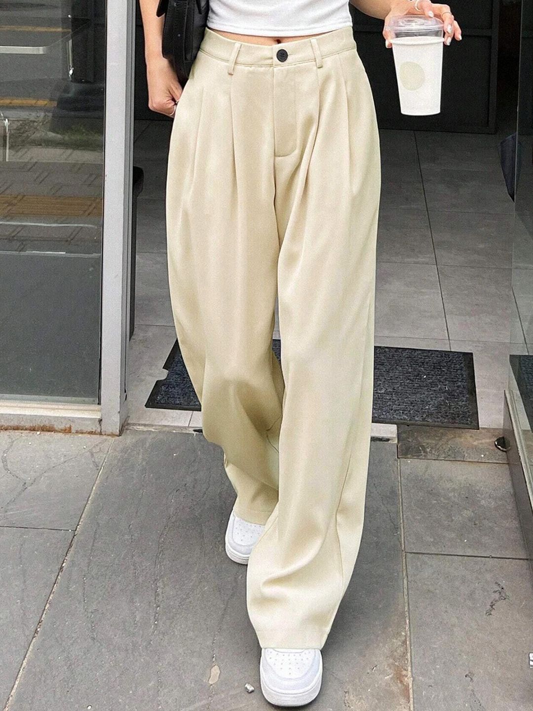 KOTTY BIZwear Women Beige Relaxed Straight Leg Straight Fit High-Rise Easy Wash Pleated Trousers