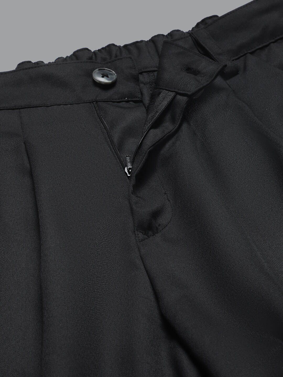 Kotty Women Black Relaxed Straight Leg Fit High-Rise Easy Wash Pleated Parallel Trousers