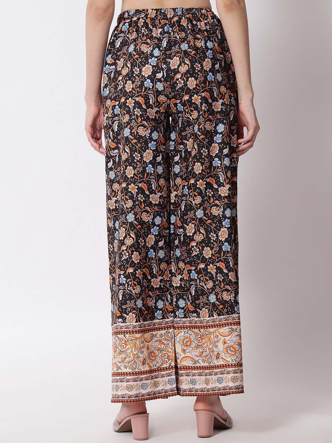 Kotty Women Brown Ethnic Motifs Printed Relaxed Flared High-Rise Easy Wash Trousers