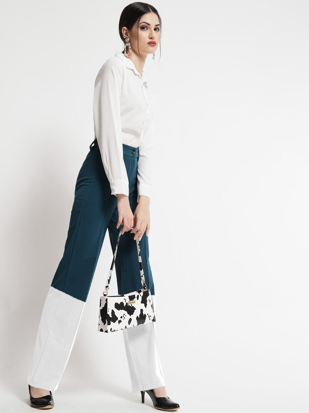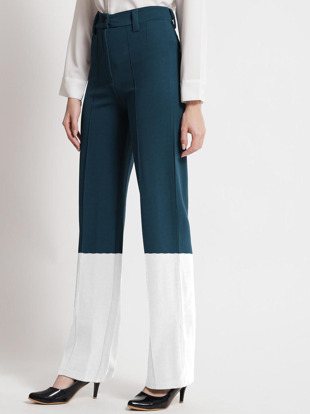 Kotty Women Colourblocked High-Rise Straight Fit Easy Wash Regular Trousers