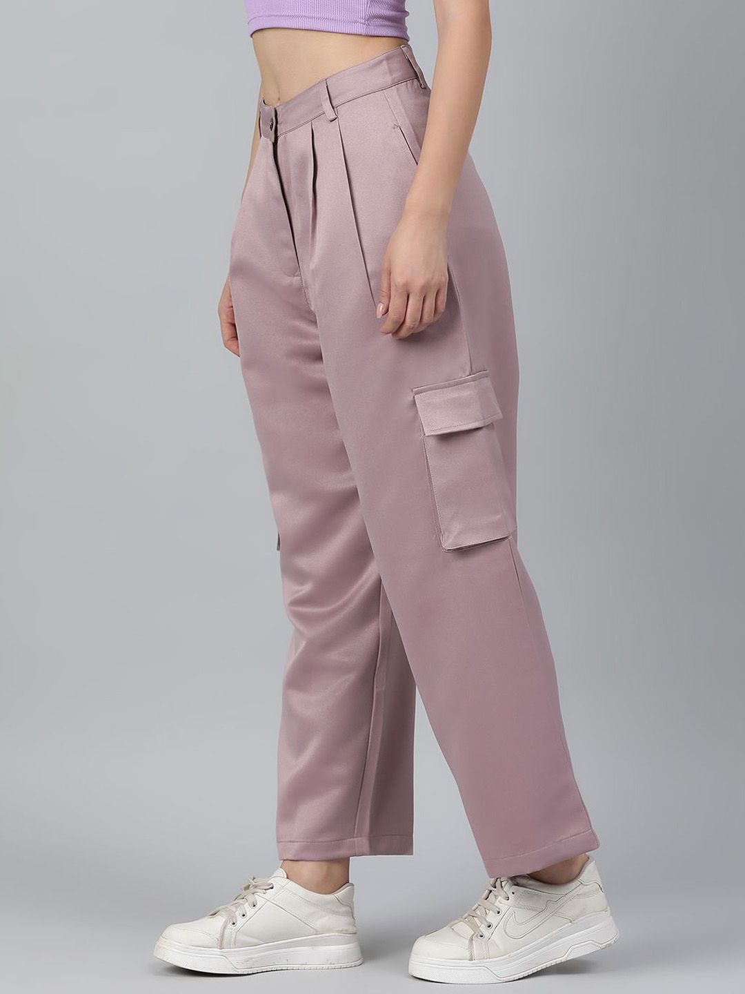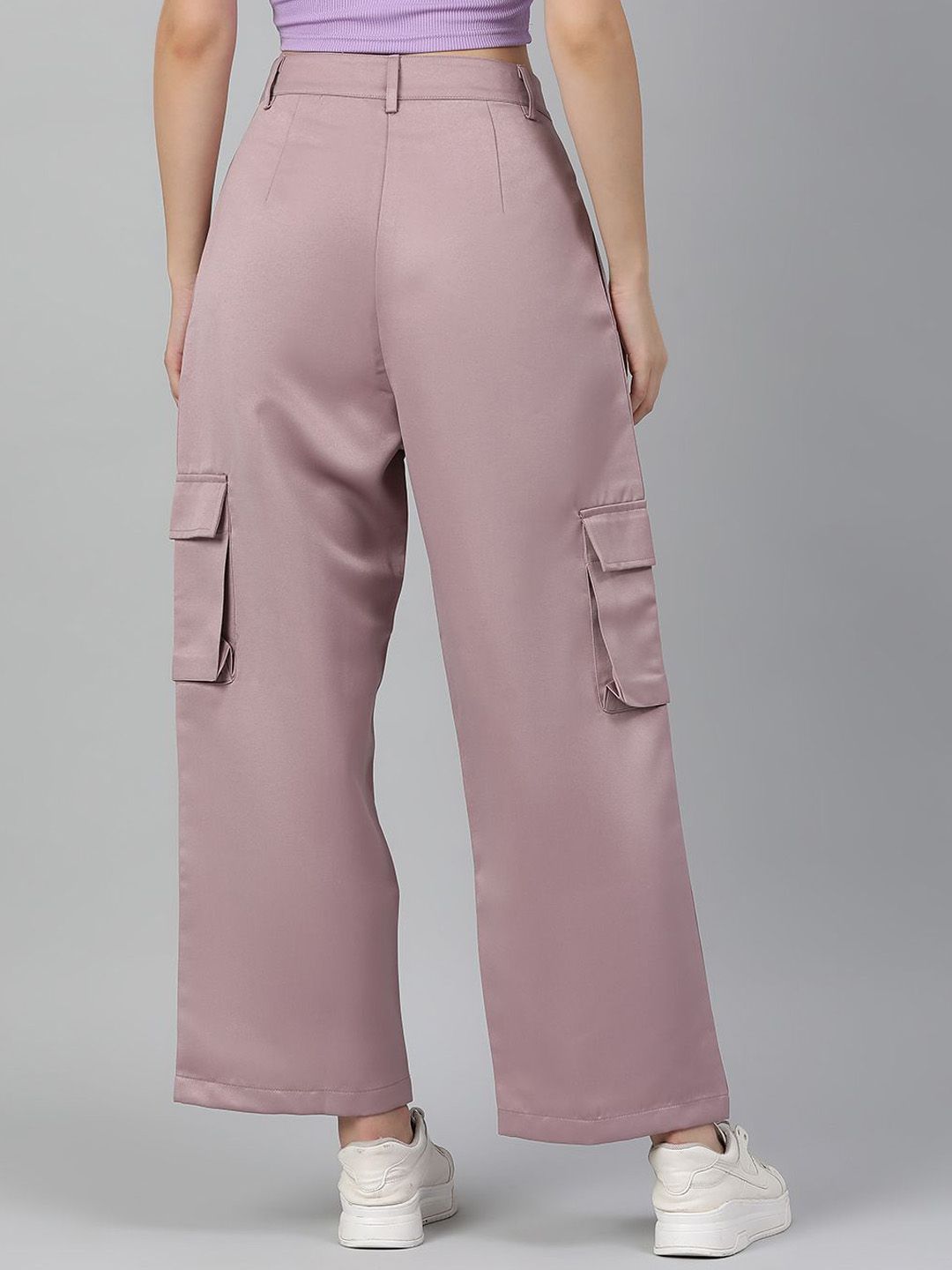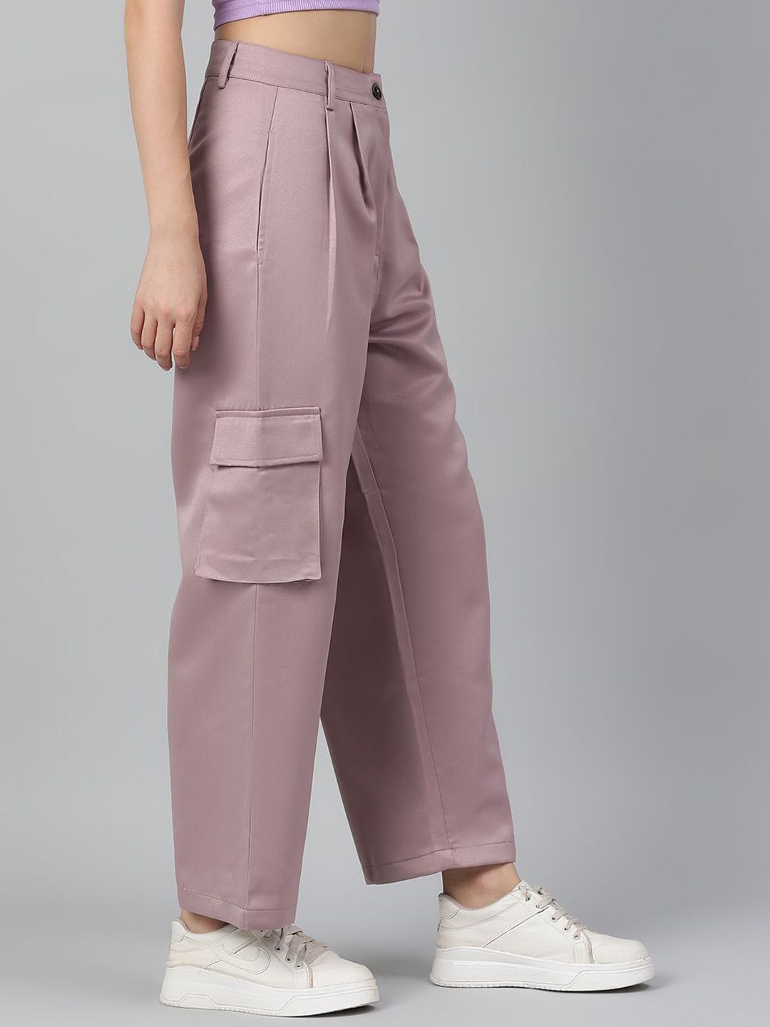 Kotty Women Pink Straight Fit High-Rise Easy Wash Cargos Trousers