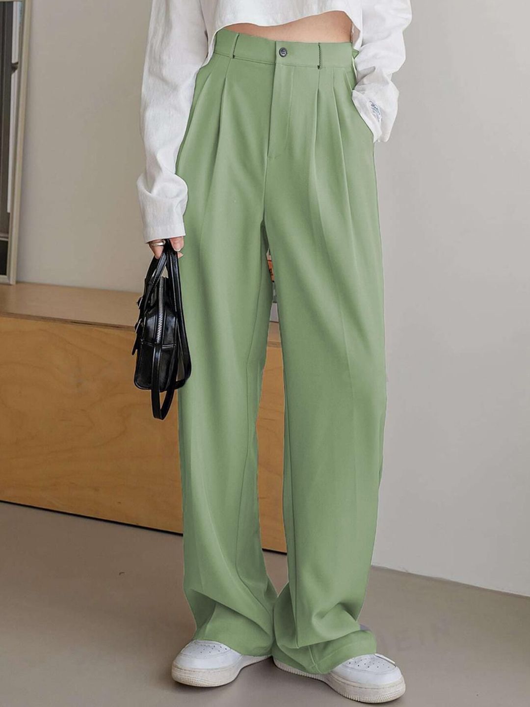Kotty Women Relaxed Straight Leg Straight Fit High-Rise Easy Wash Pleated Trousers