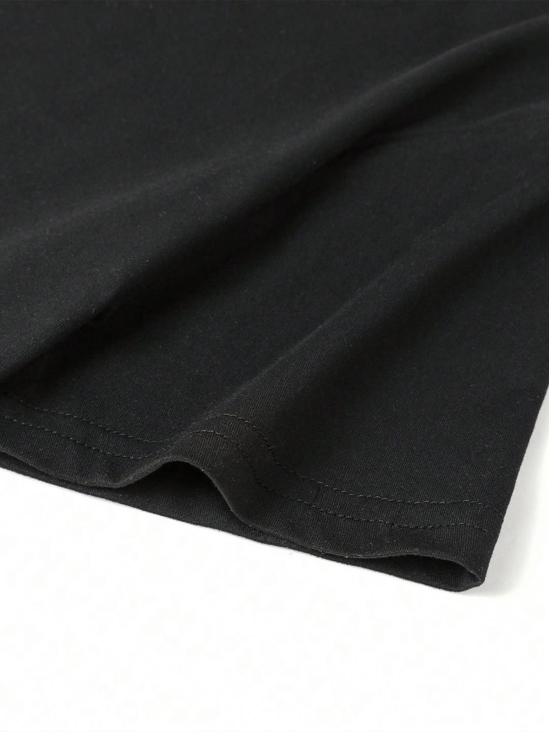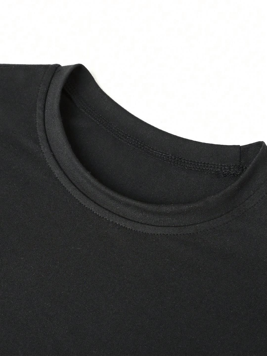 Product Details: Black t-shirt for girlsGraphicRegular lengthRound neckShort, Drop-shoulder sleevesKnitted || MATERIAL & CARE: CottonMachine Wash || SIZE & FIT: NA