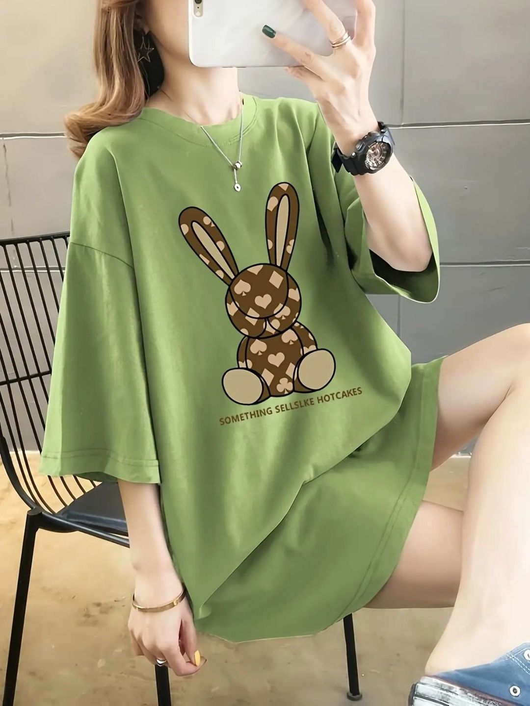Kotty Graphic Printed Round Neck Drop-Shoulder Sleeves Oversized T-shirt