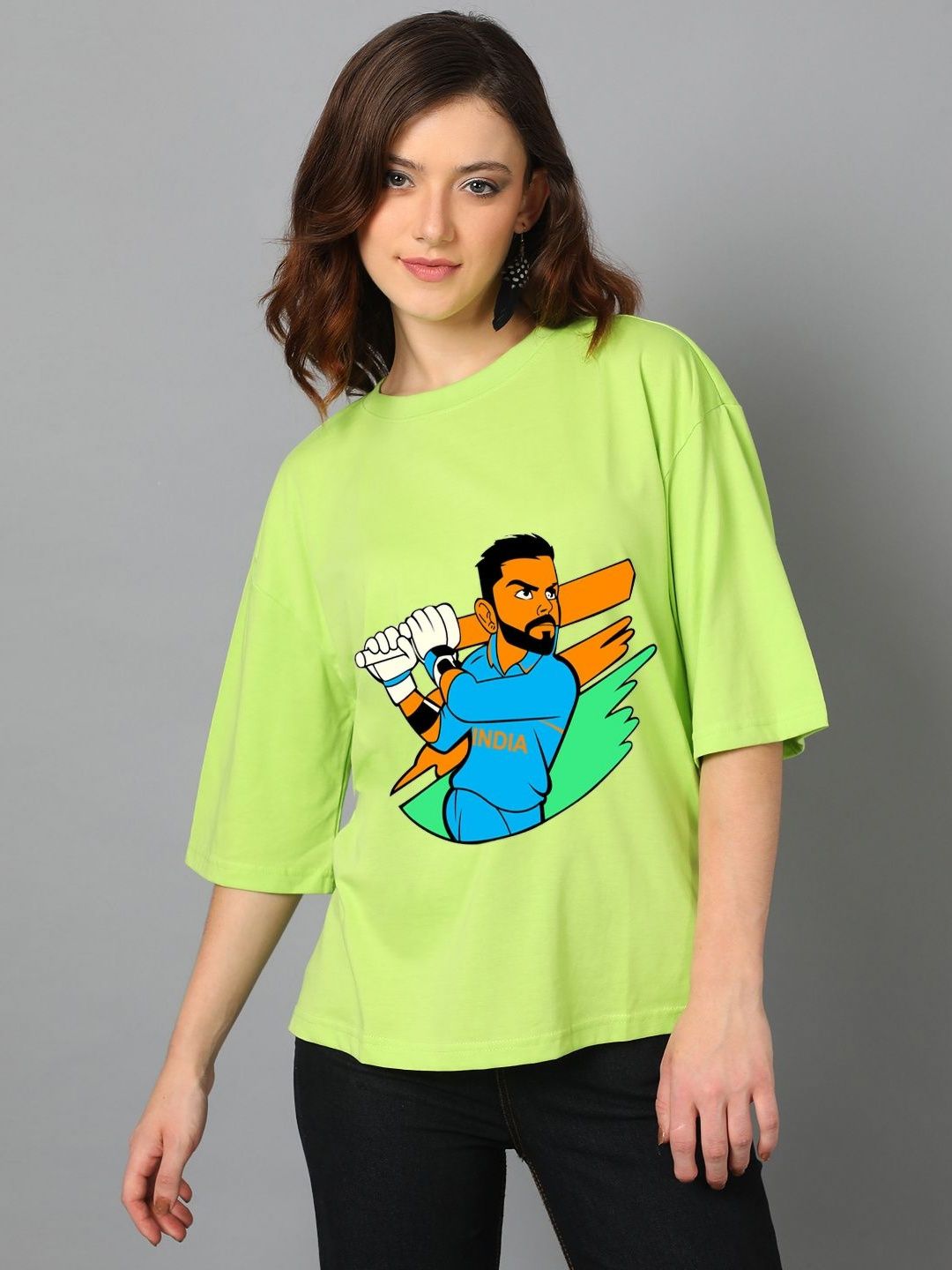 Kotty Women Graphic Printed Round Neck Cotton Oversized T-shirt