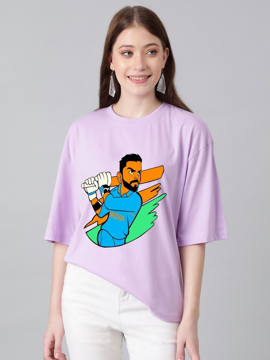 Kotty Women Graphic Printed Round Neck Cotton Oversized T-shirt