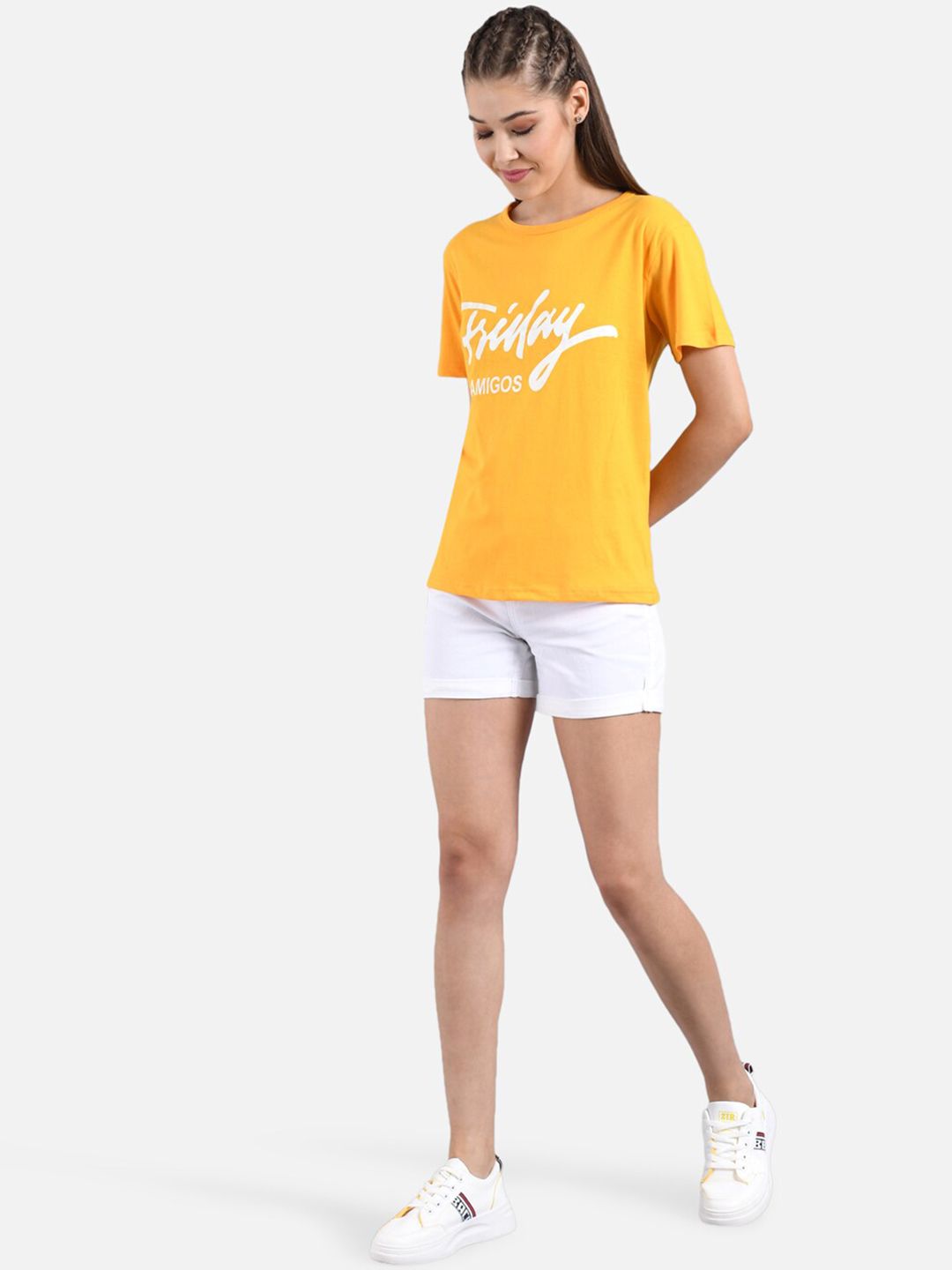 Kotty Women Pack Of 2 Yellow & Pink Printed Round Neck T-shirts