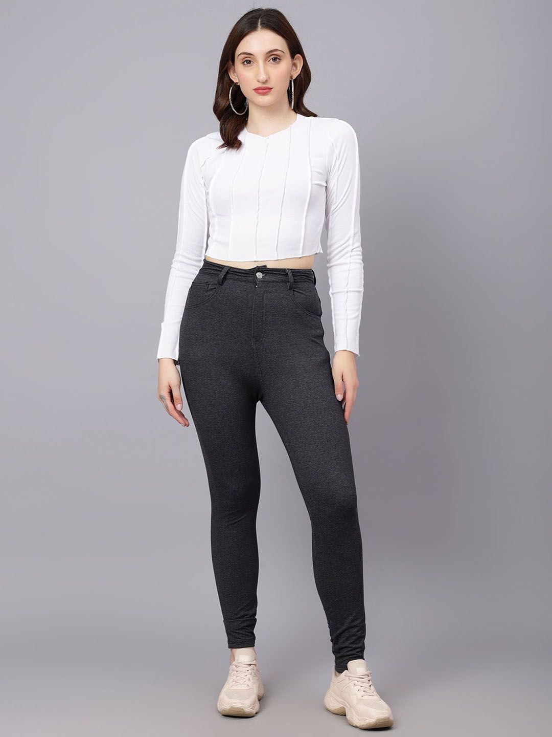 Introducing KOTTY Women's Solid High Rise Skinny Fit Jeans, the epitome of comfort and style for the modern women. Crafted with precision from a blend of cotton and lycra, these jeans offer unparalleled comfort and flexibility, making them your go-to choice for all-day wear. With a skinny fit and high-rise waist, they boast a contemporary silhouette that effortlessly complements the fashion-forward individual of today's generation. Elevate your wardrobe with Kotty jeans, where quality craftsmanship meets on-trend style, ensuring both comfort and fashion appeal are never compromised.