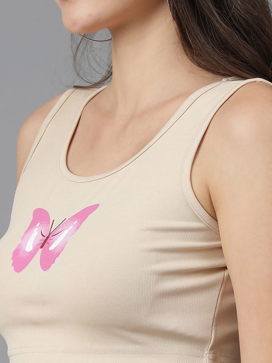 Give a beautiful upgrade to your dailywear repertoire with the mesmerising hues of this gorgeous tank top from the latest offering of Kotty. Beautifully crafted in premium viscose rayon for gentle lustre replete with a soft touch and superb comfort, it's versatile printed pattern, sleeveless and well-engineered crop fit silhouette make it a go-to choice any day. Pair it best with denims for a stunning look.