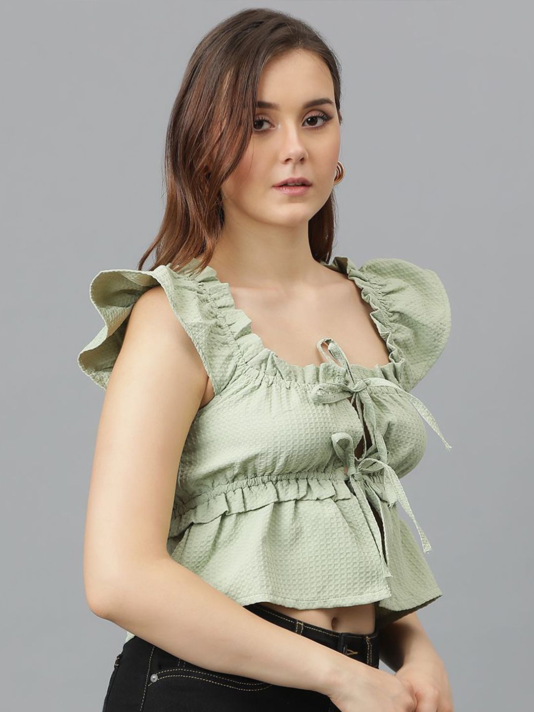 Kotty brings to you this beautiful solid Top which is made from crepe fabric with beautiful .This Flutter sleeve Top has been designed keeping in mind the latest trends in contemporary casual fashion. The Top combines Western with the fashion of today and makes you stand out among others when you adorn it.