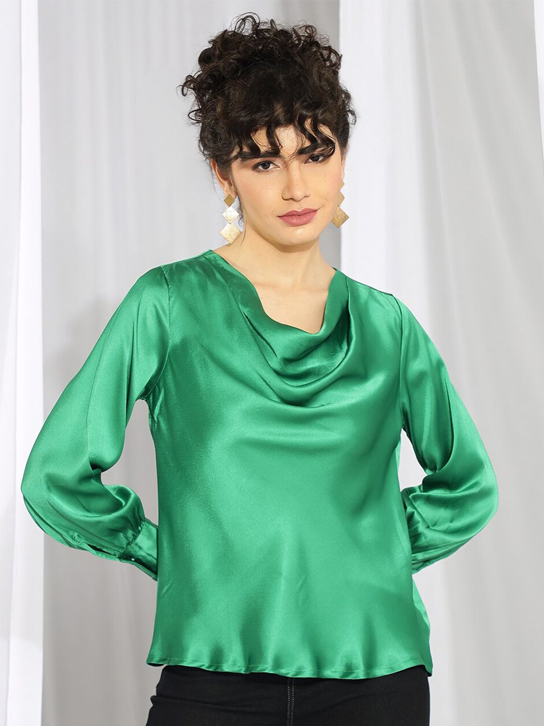 Kotty Green Cowl Neck Bishop Sleeves Satin Top