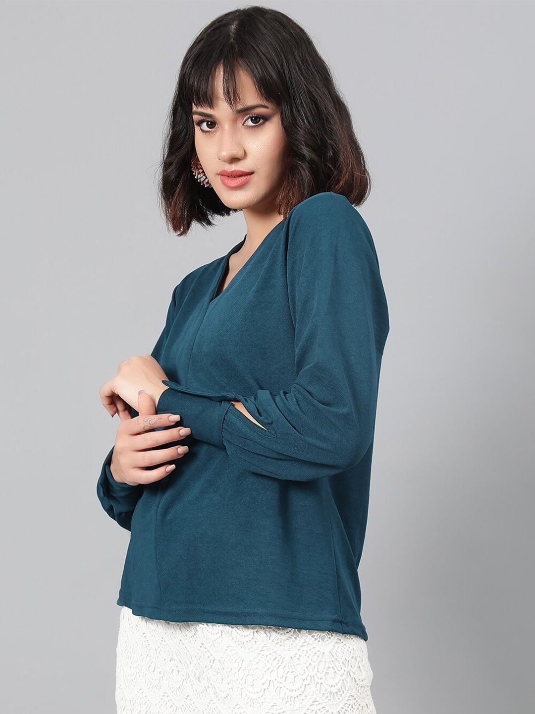 Give a beautiful upgrade to your dailywear repertoire with the mesmerising hues of this gorgeous dark green viscose rayon top from the latest offering of Kotty. Beautifully crafted in premium viscose rayon for gentle lustre replete with a soft touch and superb comfort, it's versatile solid pattern,v neck, regular sleeve and well-engineered regular fit silhouette make it a go-to choice any day. Pair it best with denims for a stunning look.