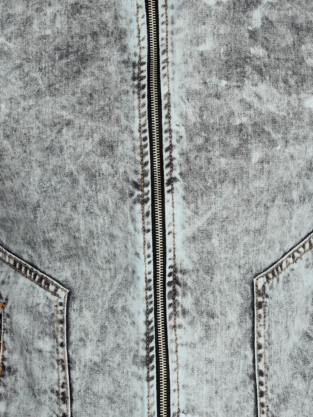 Kotty Men Charcoal Grey Solid Denim Jacket