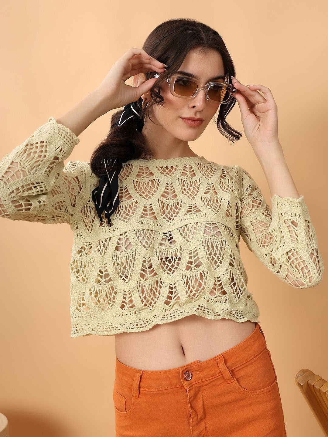 Chic, breathable, and beautifully textured—this crochet top brings an elegant boho charm to your closet. Each stitch is thoughtfully crafted to provide a look that’s both modern and timeless. Whether worn on its own or layered over a base layer, this top adds depth and warmth to your style. Its airy construction makes it perfect for warm weather, while the rich texture invites layering when temperatures dip. Pair it with everything from distressed denim to relaxed trousers or even skirts for a balanced, stylish look. This top is designed for easy wear and low maintenance—machine washable and quick to dry. A staple for women who value effortless elegance and unique craftsmanship. No matter where you wear it—beach, brunch, or beyond—this crochet top brings comfort, charm, and confidence to your outfit.
