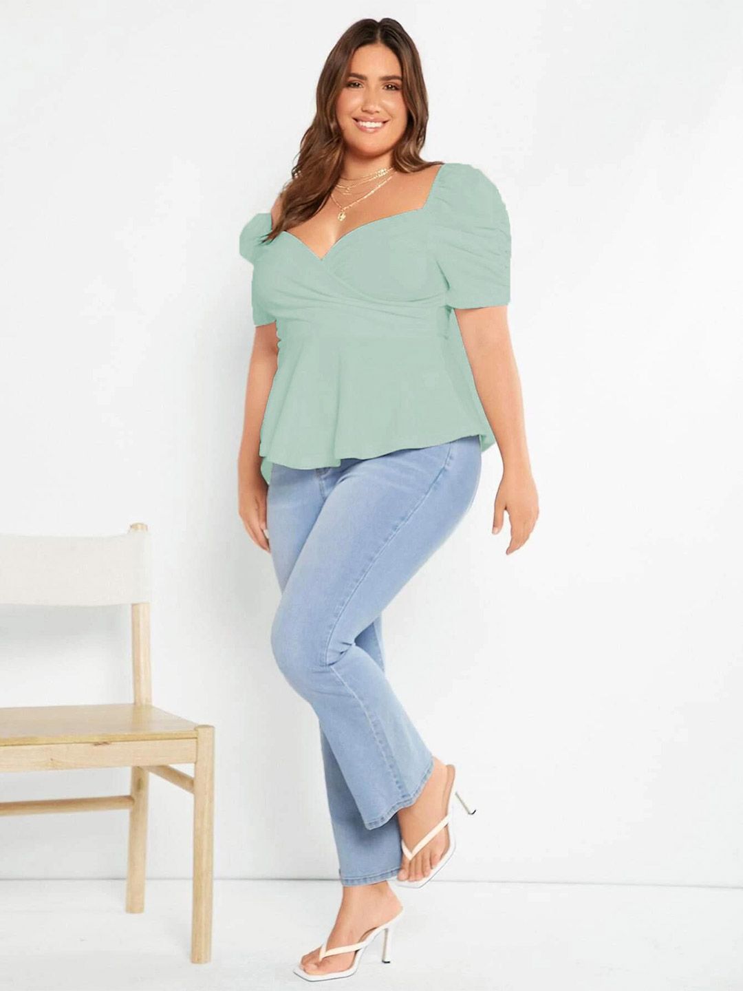 KOTTY Sweetheart Neck Puff Sleeve Peplum Top