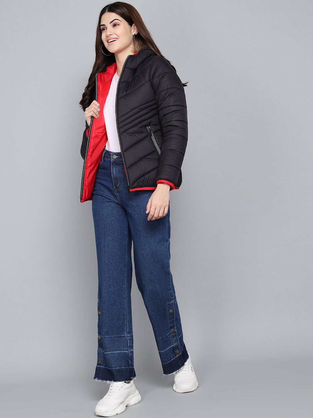 Give a trendy start to the winters with this Puffer Jacket from the house of KOTTY. This dable layered Jacket will give you warmth and comfort and Two side Pockets.Women's Bomber Jacket is Made of 100% Nylon and is avaiable in Multiple Colours