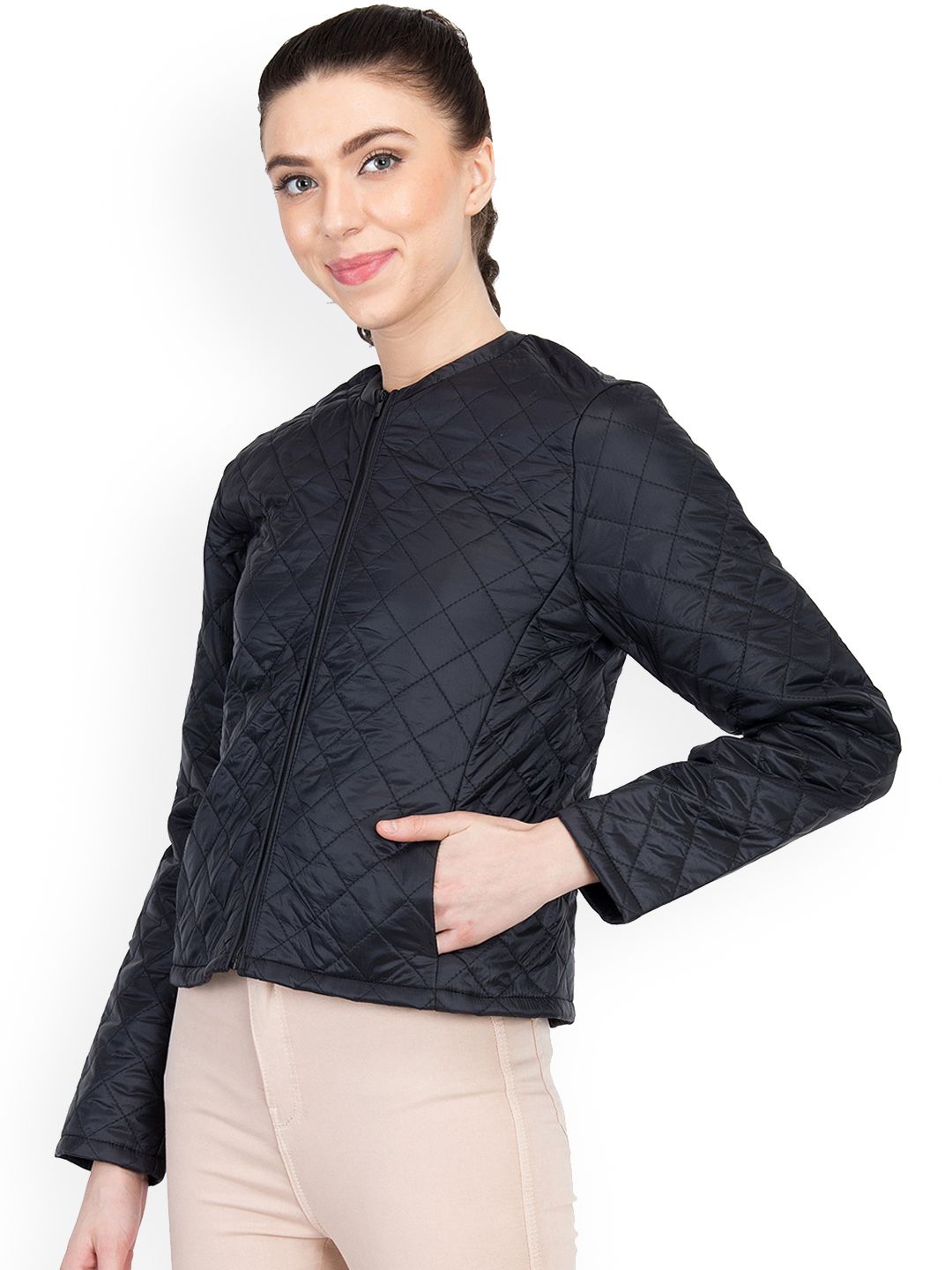 Kotty Women Black Solid Quilted Jacket
