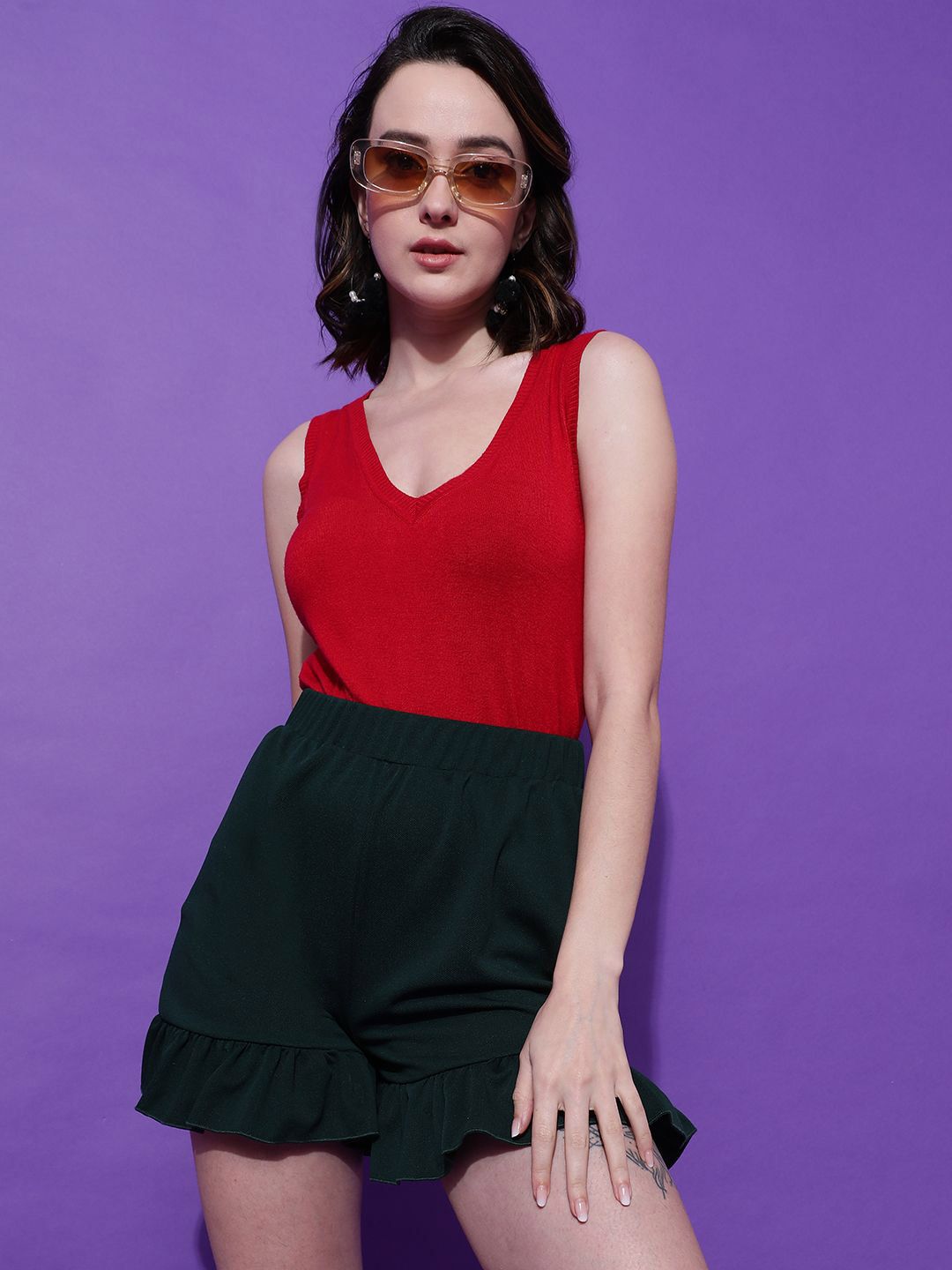 Product Details: Green solid high-rise regular shorts, has na pockets, drawstring closure || MATERIAL & CARE: Viscose RayonMachine Wash || SIZE & FIT: Regular Fit The model (height 5'8) is wearing a size 28