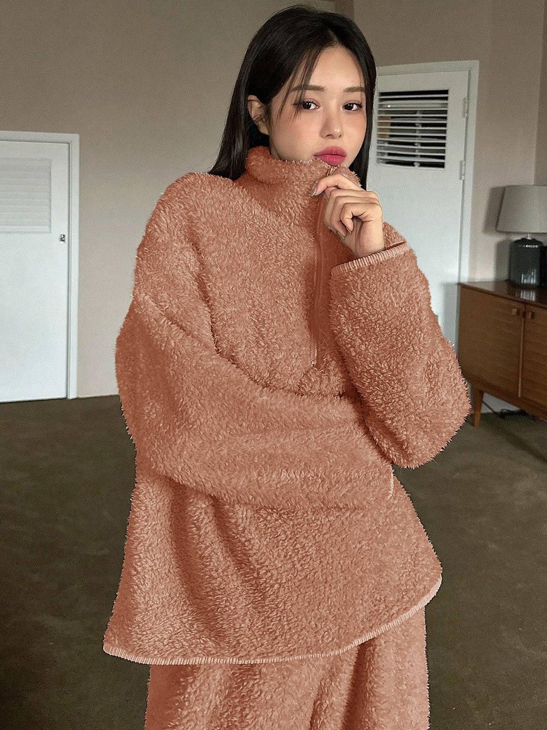 Kotty Women Lapel Collar Long Sleeves T-shirt With Pyjamas