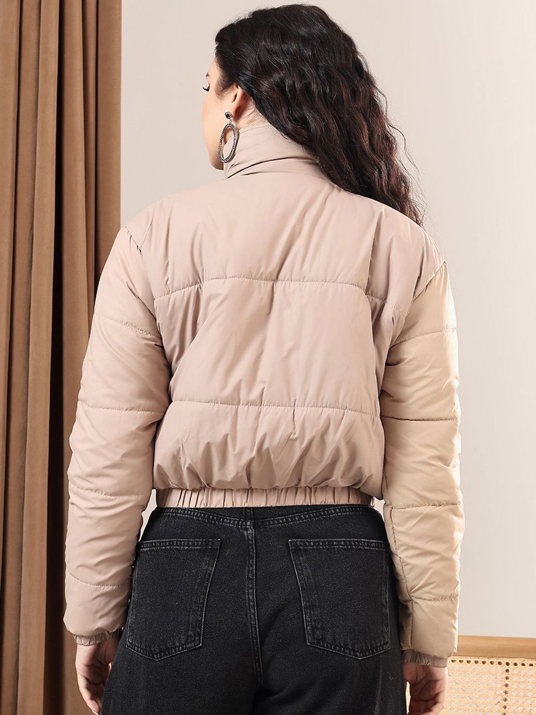 Kotty Women Mock Collar Solid Casual Puffer Insulator Jacket