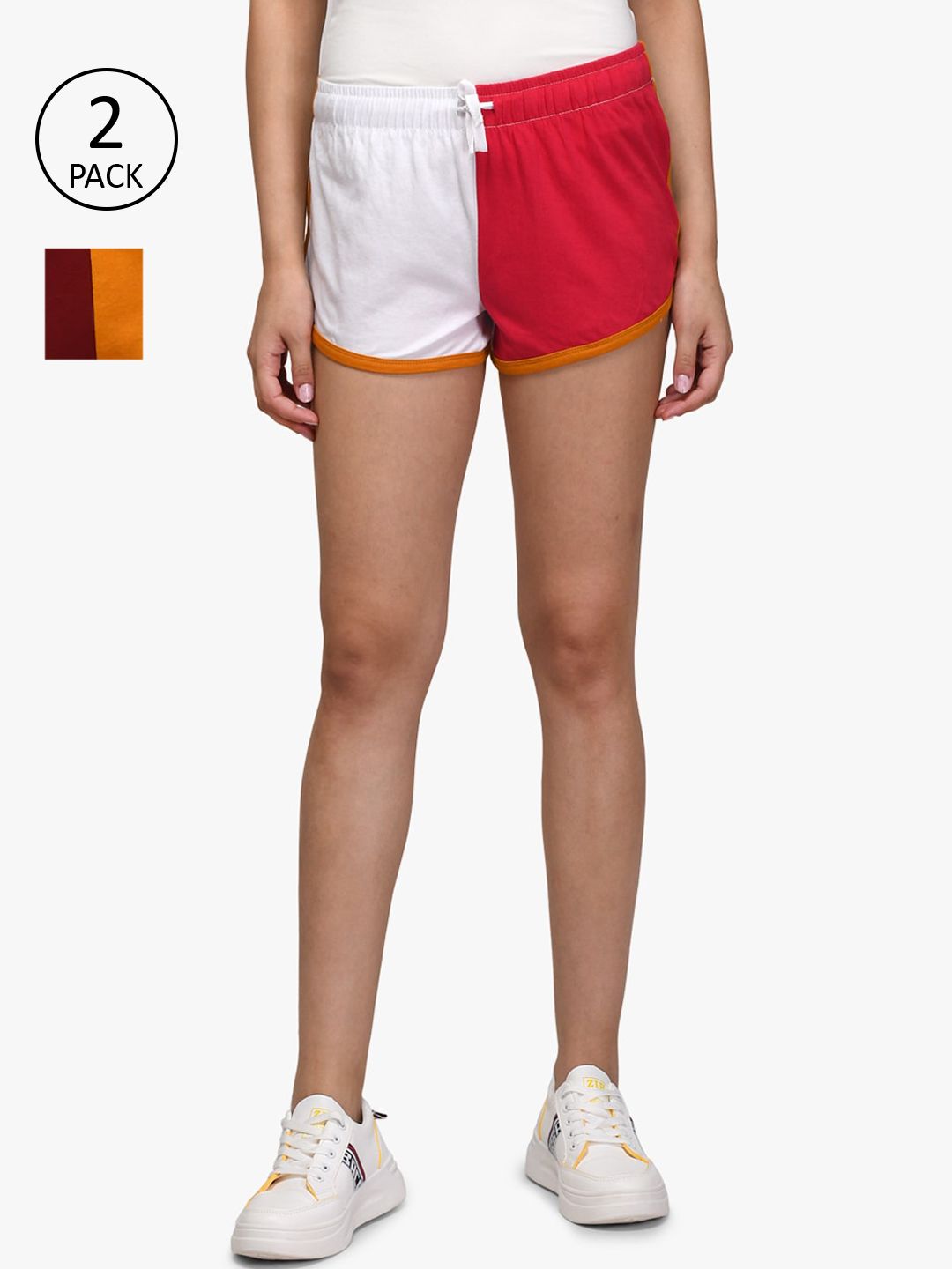 Kotty Women Pack Of 2 Colourblocked Regular Fit Regular Shorts